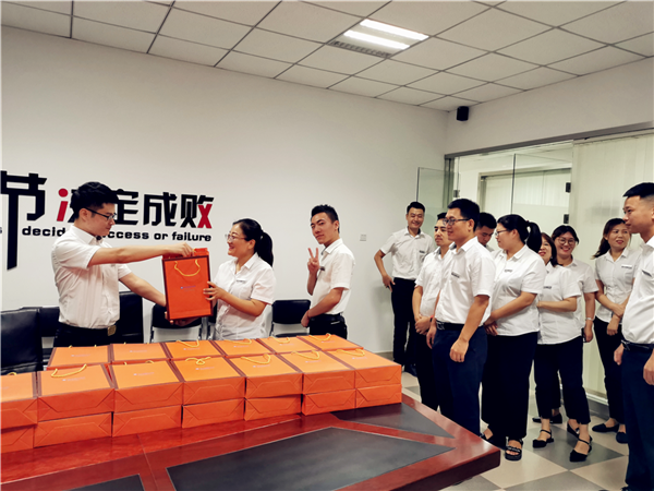 載滿祝福的購(gòu)物卡、中秋月餅禮盒、紅酒禮盒、橄欖油、海鮮禮盒等陸續(xù)被發(fā)放到員工手中。各發(fā)放現(xiàn)場(chǎng)熱鬧異常,每一位員工臉上都洋溢著幸福的微笑,紛紛對(duì)公司領(lǐng)導(dǎo)的關(guān)懷表示感謝,為能在鑫江工作感到無(wú)比自豪和驕傲。