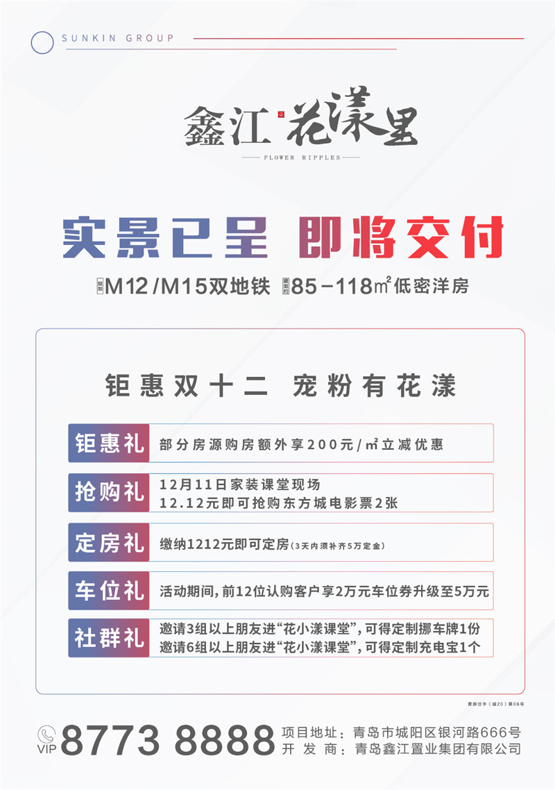 為敬謝一城厚愛,鑫江置業(yè)年末獻禮,特推出“品質交付季|12.12年終盛典”活動,年終抄底鉅惠,繽紛福利,火爆來襲!