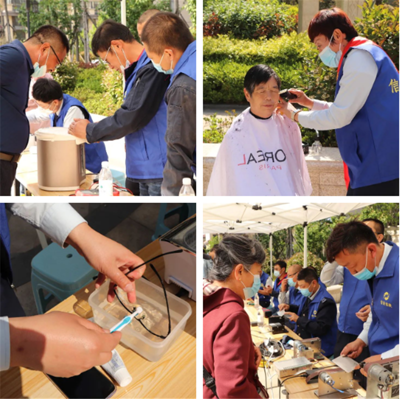本次公益服務(wù)范圍涉及了理發(fā)、小家電維修、穿馬扎、磨剪刀、磨菜刀、眼鏡清洗、首飾清洗等服務(wù)項目,看著它們煥然一新的樣子,業(yè)主們心里的石頭也終于落地了。